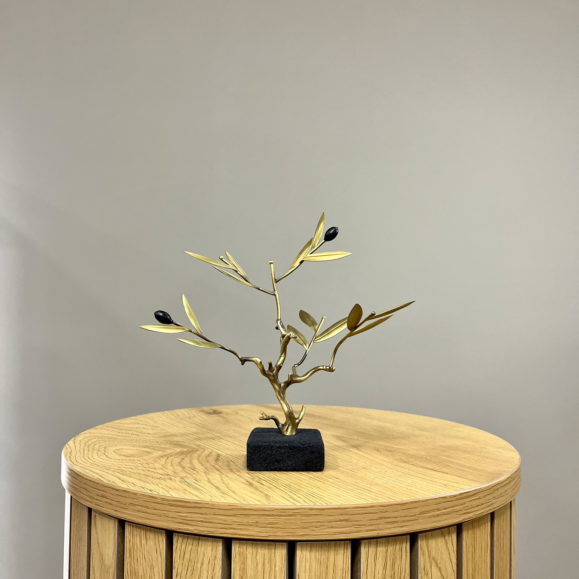 Hand made bronze olive tree with patina on a black volcanic stone.