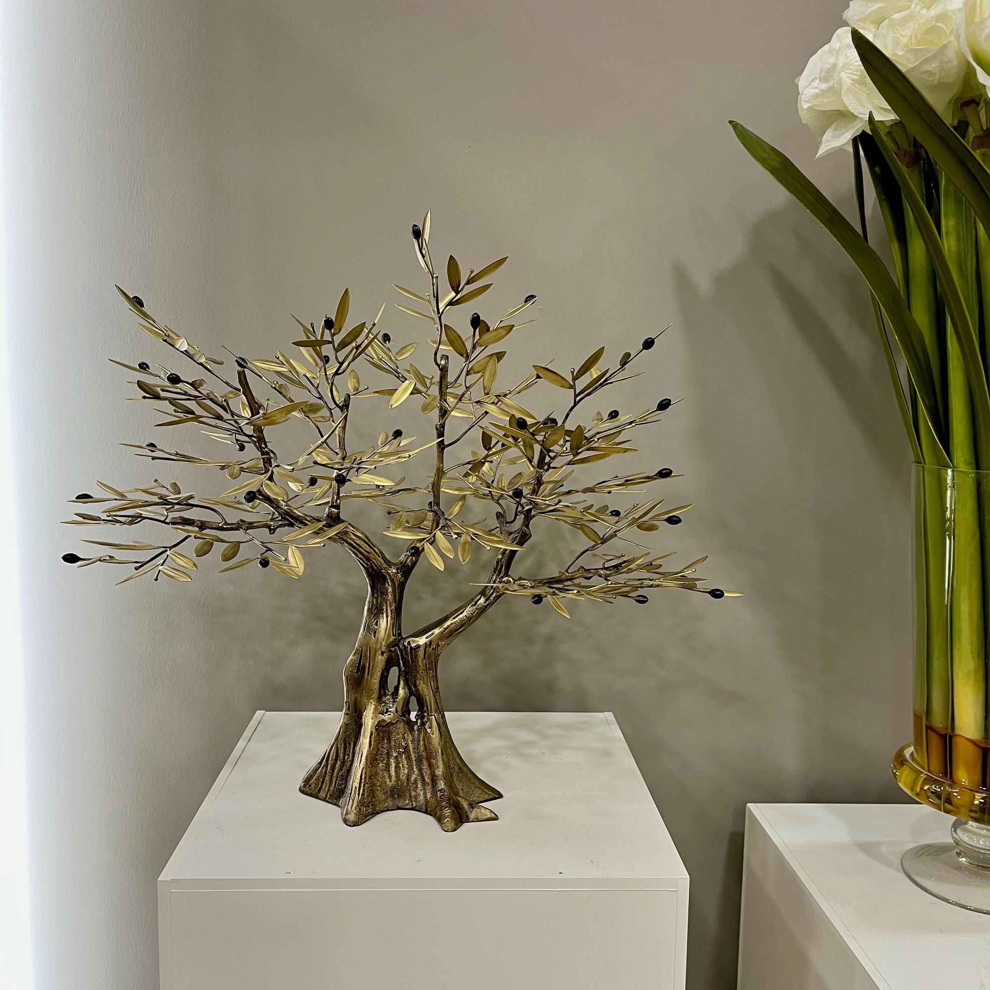 Hand made bronze olive tree with patina.