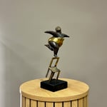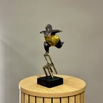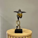 Hand made bronze artwork in dark brown & gold patina on a black volcanic stone base.
