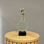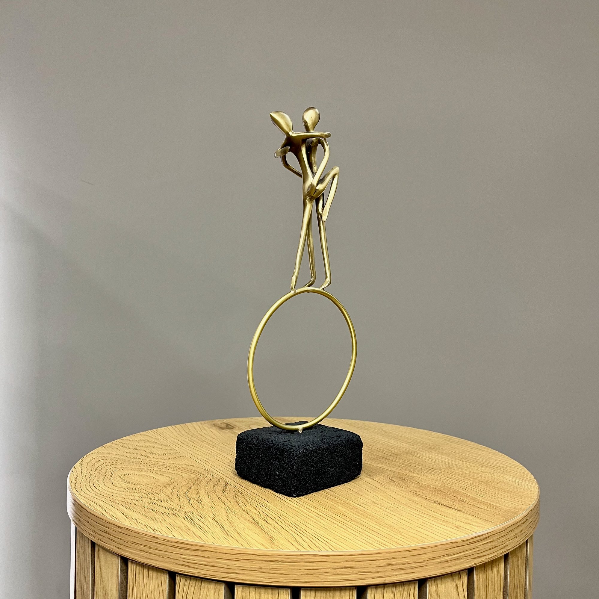 Hand made bronze artwork in gold patina on a black volcanic stone base.