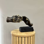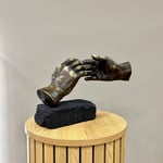 Hand made bronze artwork in dark brown patina on a volcanic stone base.