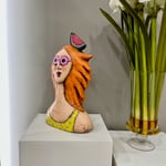 Hand made & hand painted red headed woman from paper mâché.