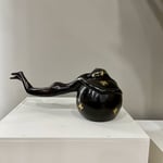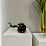 Hand made bronze artwork in dark brown patina on a wooden base.